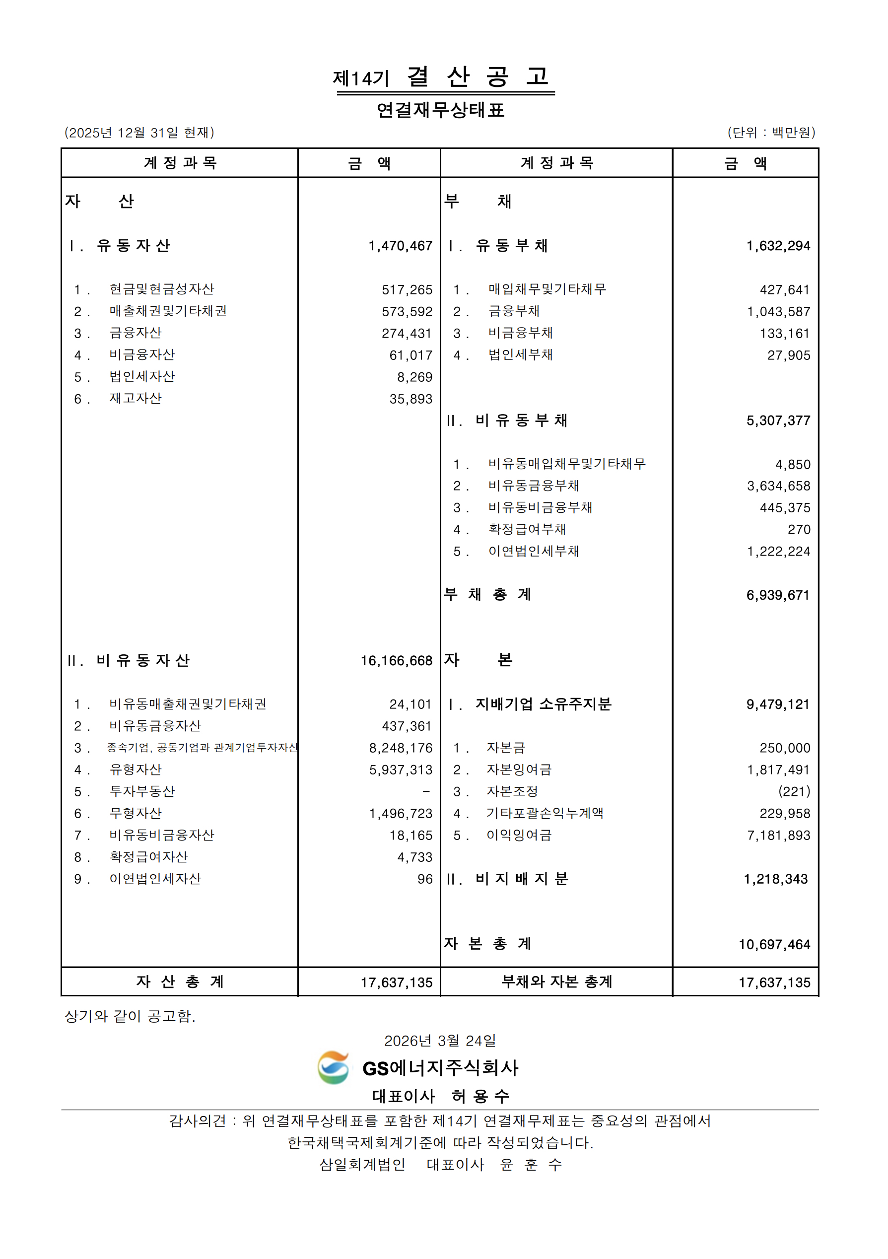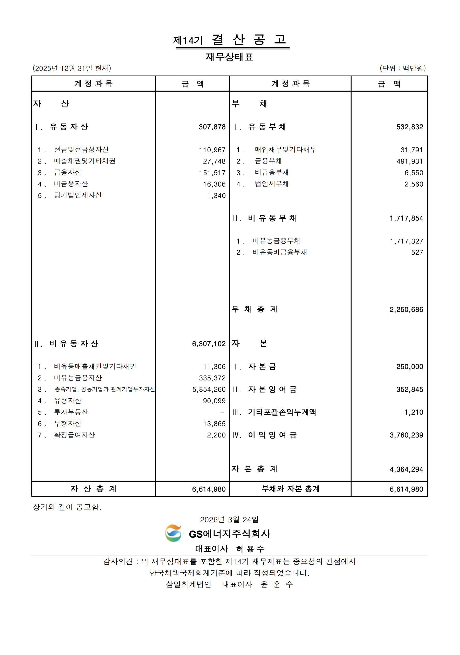 GS에너지 제14기 결산공고